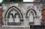 to preserve part of the village's heritage. The stone was gifted by Saint Susanna's Parochial Church Council and decorative stonewark originally formed two windows, one in the end gable and one in the south wall of the Church Hall Sitwell Room prior to its refurbishment. The church hall was built in 1869 by Squire Wilmot-Sitwell of Stainsby Hall and was the second school in the Parish until the opening of the present school ion 1913. Most of the original stone was re-used in the re-building, but the original windows were not included in the redesigned Church Hall and now form part of this commemorative wall which also includes the base plinth and is capped with the parapet stones. The stone originated from local quarries at Coxbench and some infill matching stone used here, from Rugely. |