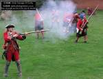 Photos of the annual reenactment of the Bonnie Prince Charlie battle Swarkestone. This two day annual event is acted out by the Charles Edward Stuart Society, it has been performed every year since 1990. Day one is held here at Swarkestone and day two at the green near the Silkmill in Derby. I took this set of photos at the 2003 event in Swarkestone on Saturday 6th December 2003. The battle starts off from across the river Trent then on the grass area in front of the Crewe and Harpur public house. For an exact map location of this event click HERE |