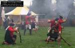 Photos of the annual reenactment of the Bonnie Prince Charlie battle Swarkestone. This two day annual event is acted out by the Charles Edward Stuart Society, it has been performed every year since 1990. Day one is held here at Swarkestone and day two at the green near the Silkmill in Derby. I took this set of photos at the 2004 event in Swarkestone on Saturday 4th December 2004. The battle starts off from across the river Trent then on the grass area in front of the Crewe and Harpur public house. For an exact map location of this event click HERE |