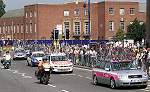 Description : The crowd gathers. Image Reference No. : DP-030904TOUROFBRIT-01 Date photo taken : 3rd September 2004 Other Information : Here is the view of the Morledge in Derby, The expectant crowd gathers as the moment arrives. |